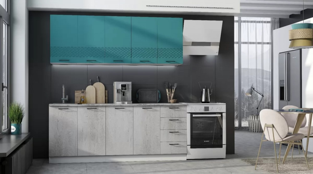 Кухонный прямой гарнитур арт.7, 2000 мм, Роял Вуд Голубой/Вегас