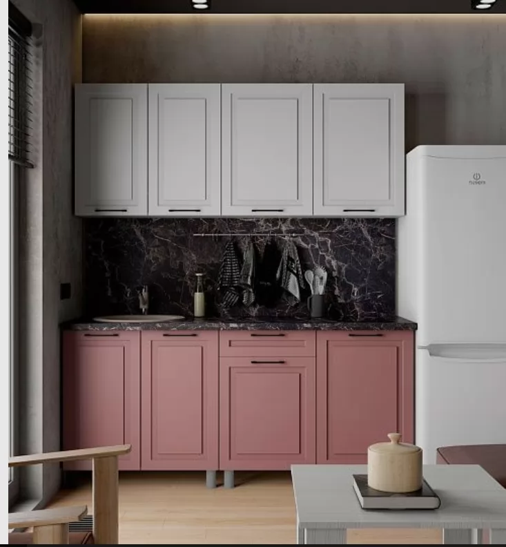 Кухня АЛИКАНТЕ 1,8м (б/сушки, б/мойки 800), ЛДСП Белый/МДФ Белый снег-Пудра Б/СТОЛЕШН