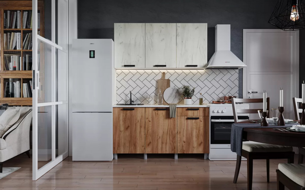 Кухня ДИОР 1,5м (б/сушки, б/мойки 500), ЛДСП Белый/ЛДСП Дуб Крафт Белый-Дуб Крафт Табач Б/СТОЛЕШ НК
