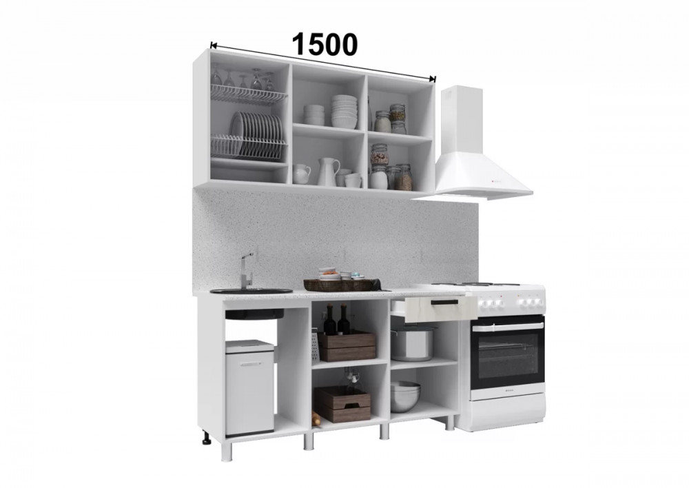 Цоколь, столешница, стеновая панель, посудосушитель в комплет не входят.