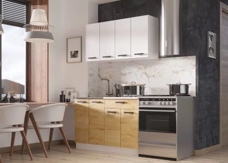 Кухонный гарнитур «Габриэлла» длиной 200 см Дуб крафт золотой/Сноу