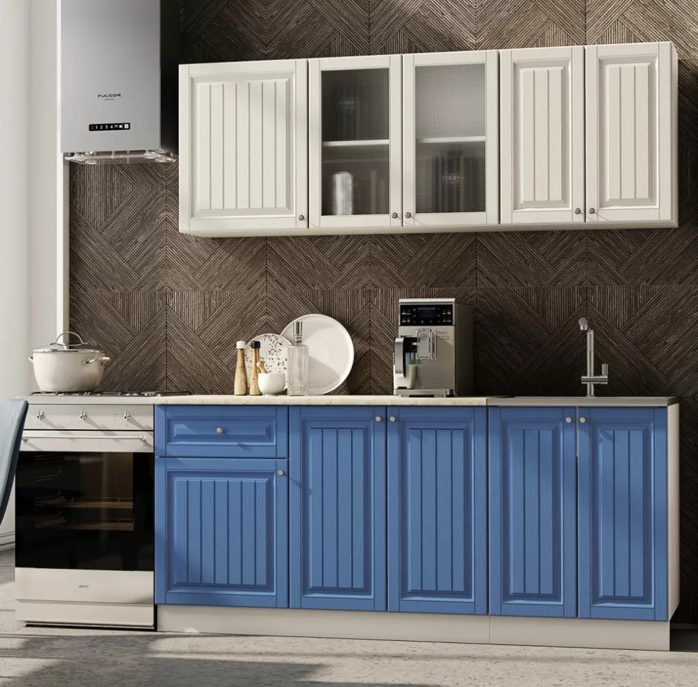Кухня "Хозяюшка" магнолия-деним 2,0 м Белый/Мускат глянец