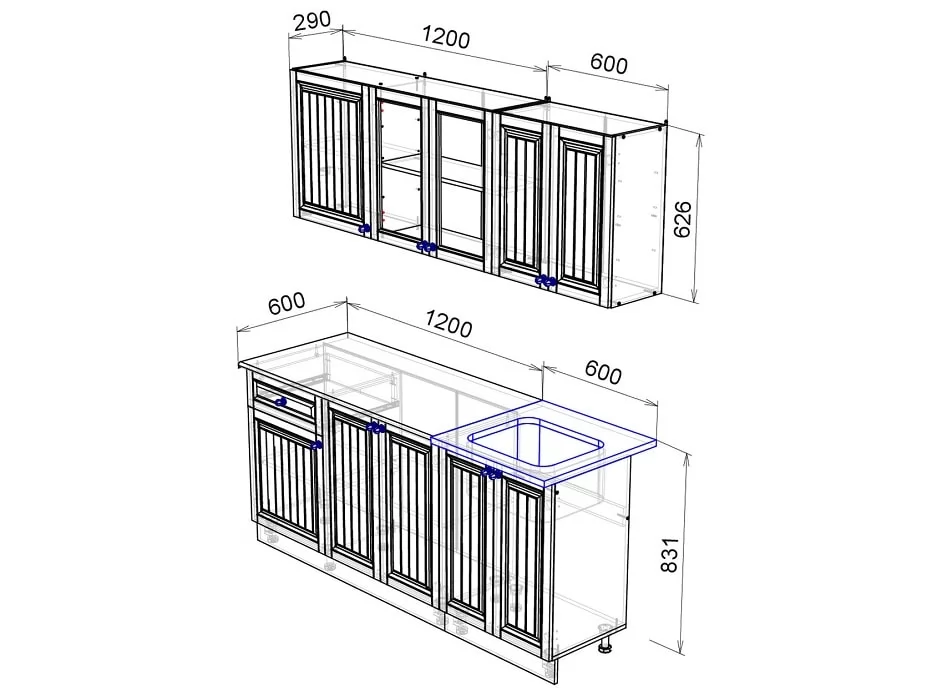 Мойка накладная (600 мм) и сушка приобретаются отдельно.