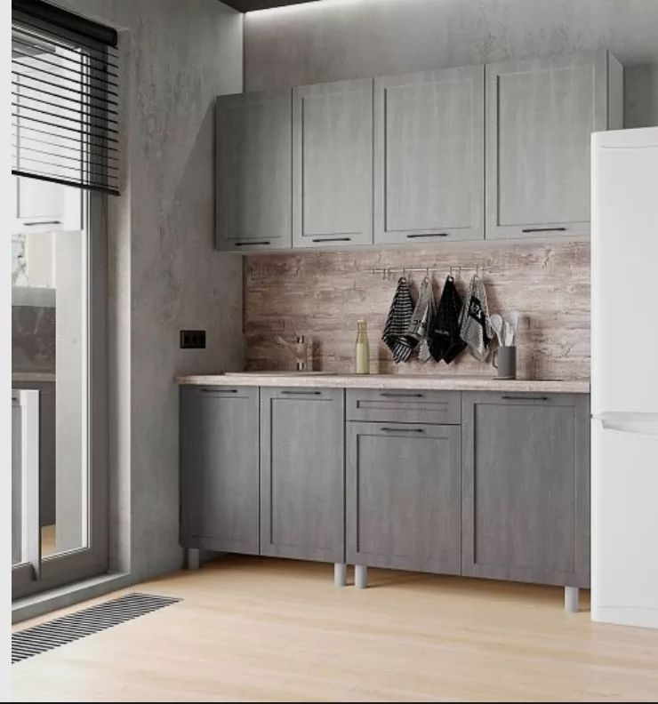 Кухня КАЛЬЯРИ 1,8м (б/сушки, б/мойки 800), ЛДСП Белый/МДФ Холст Натуральный-Холст Грей Б/СТОЛЕШН НК
