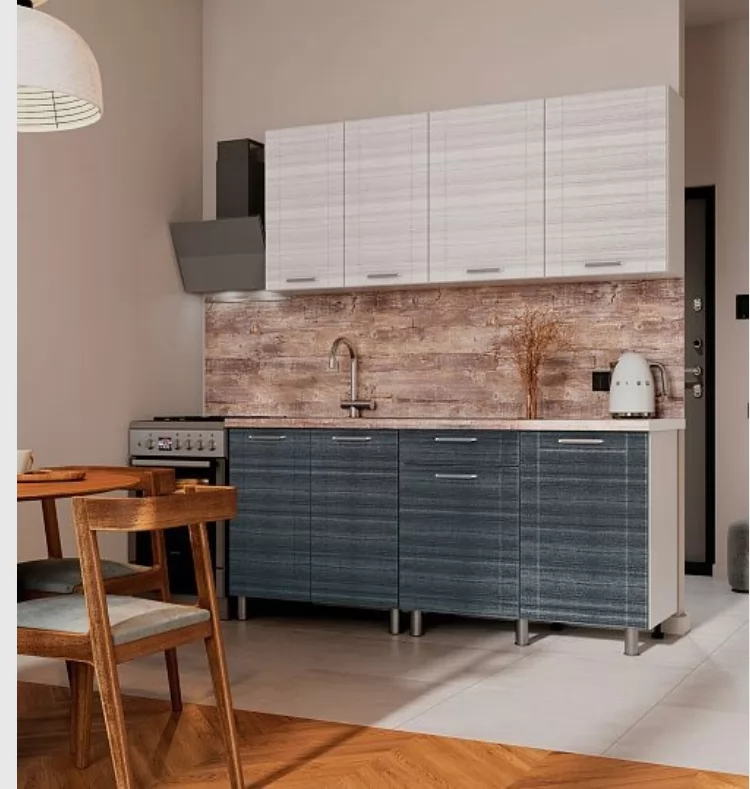 Кухня ЛИГА 1,8м (б/сушки, б/мойки 800), ЛДСП Белый/МДФ Сандал Белый/Сандал Серый Б/СТОЛЕШН