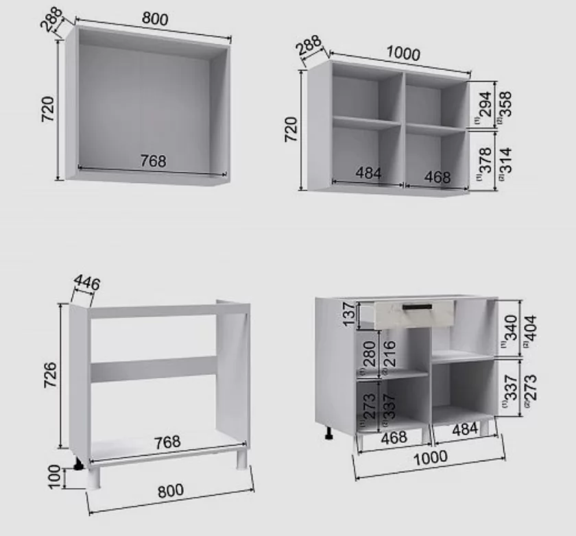 Цоколь, столешница, стеновая панель, посудосушитель в комплект не входят.
