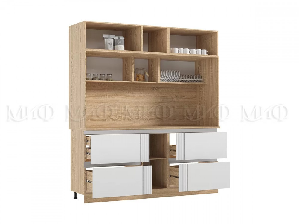 Кухня МДФ Карина Центральная секция 2000 (Пластер Бьянко/Сонома)