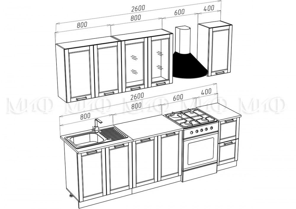 Кухонный гарнитур угловой Жемчуг 2600х1600 столешница 26 мм