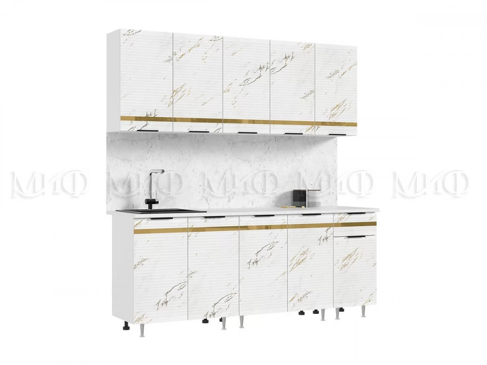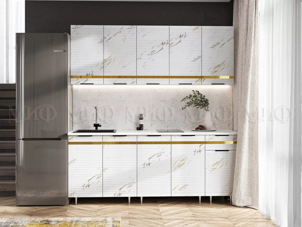 Кухня Милена 2,0м (Мрамор белый софт/Мрамор блэк софт (Антарес))