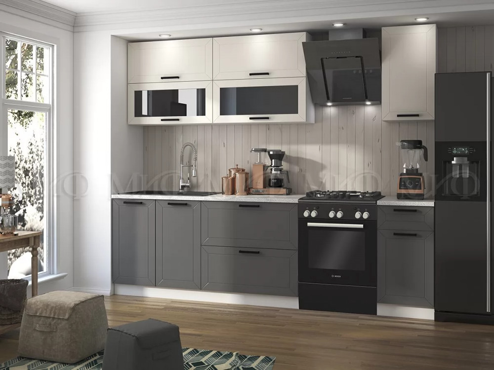 Кухня Монако 2,0м Компоновка №2 (Белый снег Софт/софт графит (Антарес))