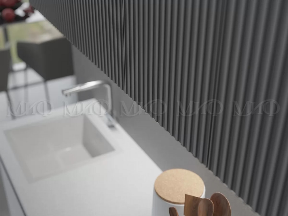 Кухня Оливия NEW 3,0х1,8м (Графит/Экзотическое дерево Амазония/Графит софт)