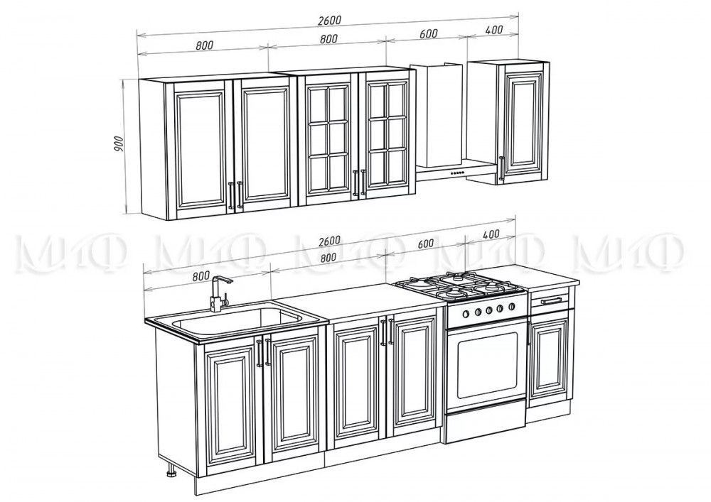 Карнизы комплектуются отдельно и в стоимость гарнитура не входят.