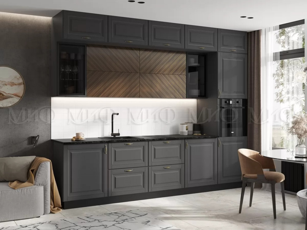 Кухня Престиж 3,0м Компоновка №1 (Графит/Графит софт/Прайм орех)