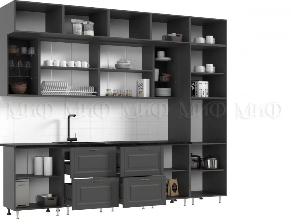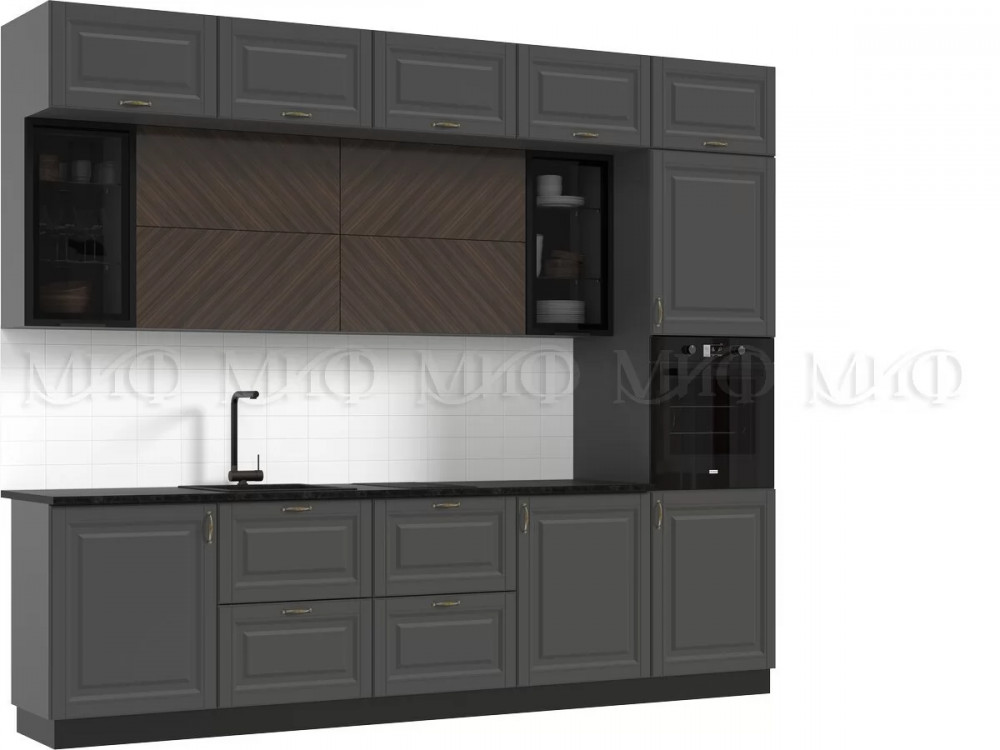 Кухня Престиж 3,0м Компоновка №2 (Графит/Графит софт/Прайм орех)