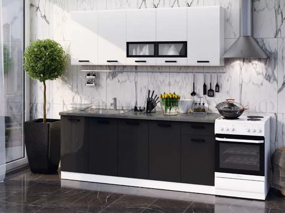 Кухня Рио 2,0м (Белый глянец холодный/Графит глянец (Кастилло))