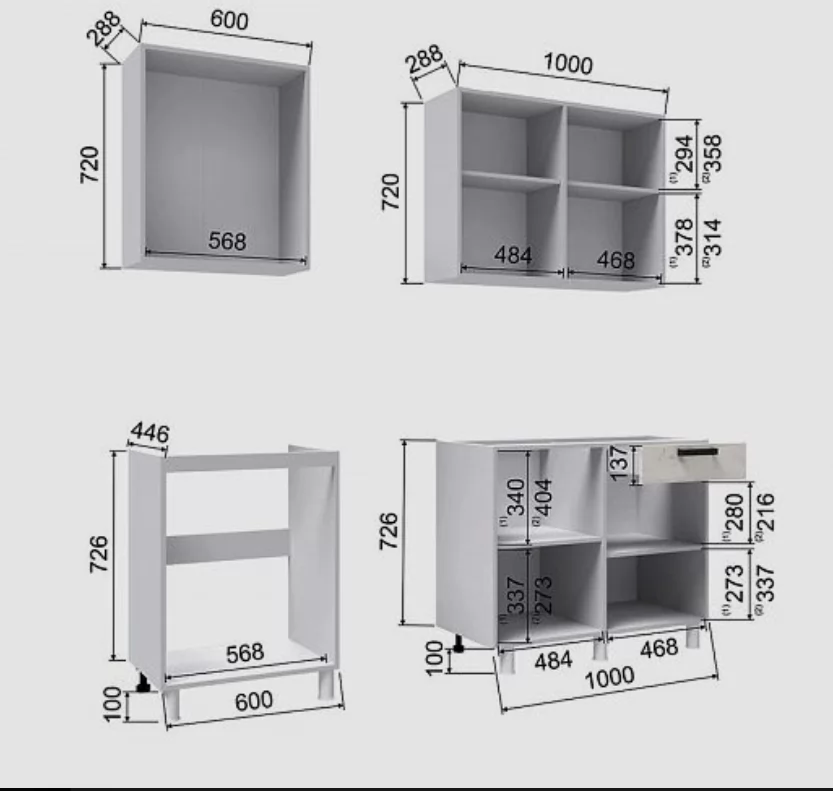 Высота верхних шкафов, мм: 720