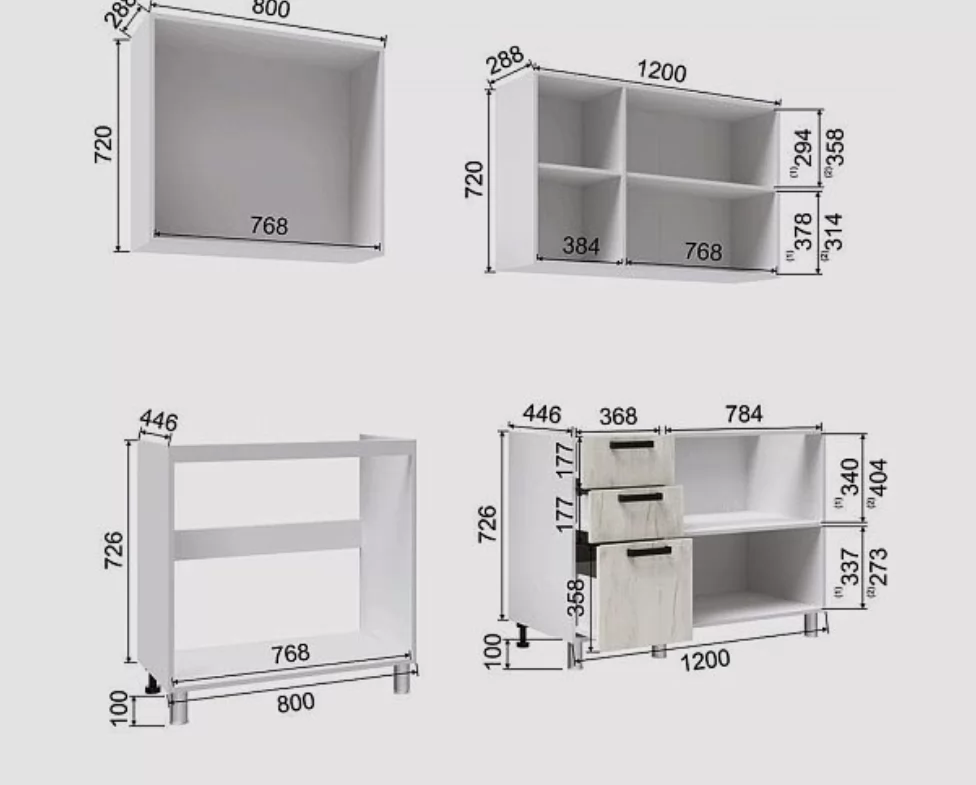 Высота верхних шкафов, мм: 720