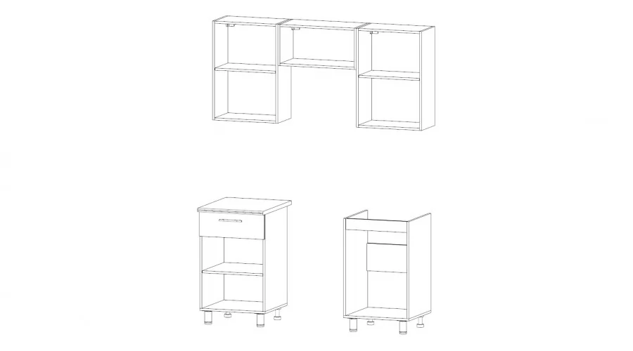Состав: Газовка, Шкаф 500(2шт), Стол-комби 500, Стол-мойка 500 (мойка в комплект не входит).