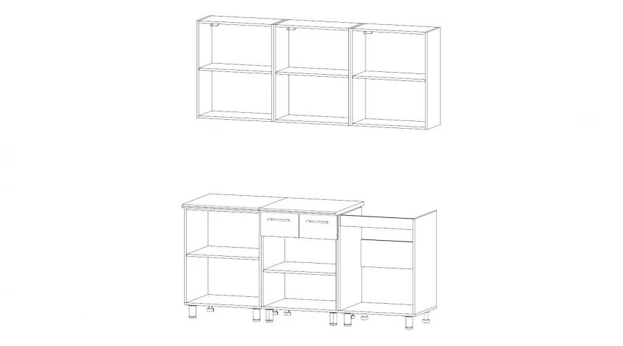 Состав: Шкаф 600(3 шт), Стол 600, Стол-комби 600, Стол-мойка 600 (мойка в комплект не входит).
