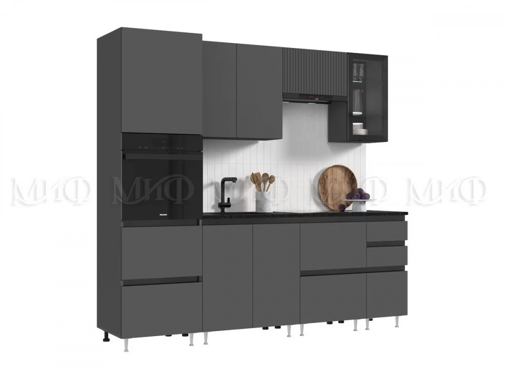 Кухня Техно-6 2,4м (Графит/Экзотическое дерево Амазония/Графит софт)