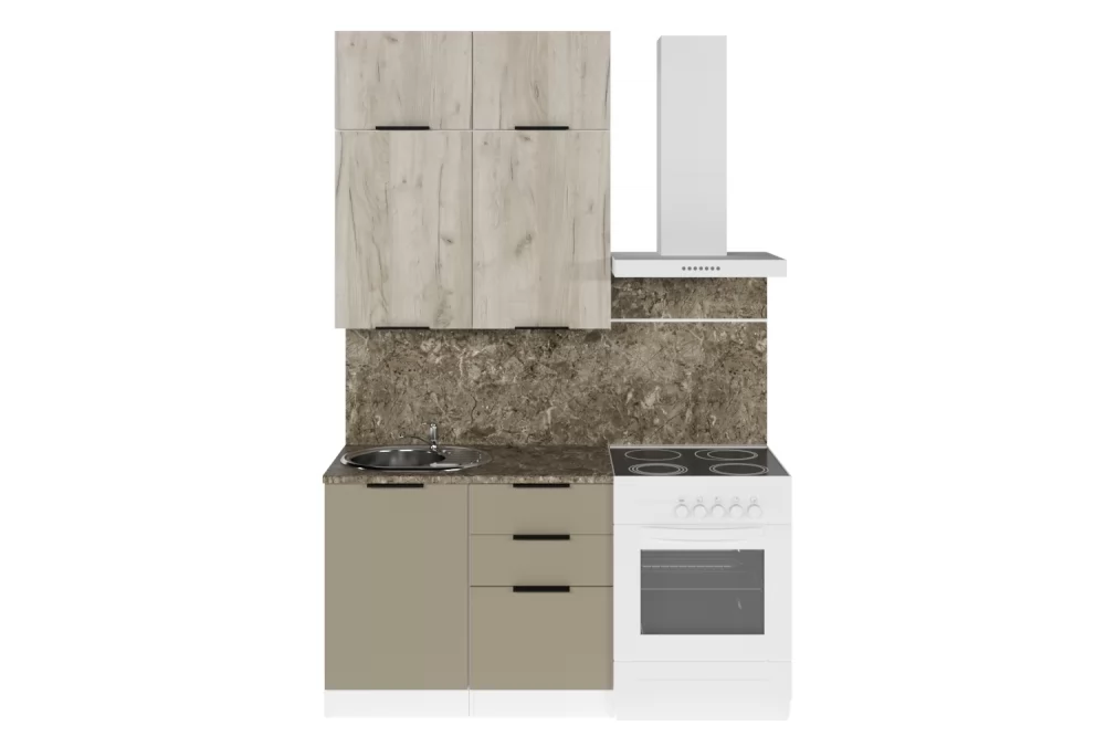 Мойки, смесители, посудосушители, варочные панели, духовые шкафы, плиты, вытяжки в комплекты гарнитуров не входят.