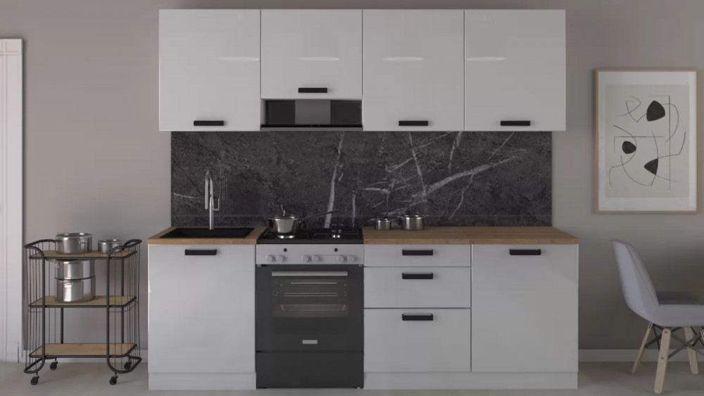 Габаритный размер готового набора модулей с учетом газовой плиты на 60см: 240 см.
