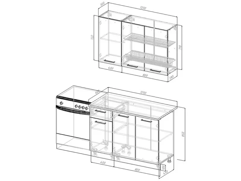 Кухонный гарнитур «Фиджи» длиной 120 см