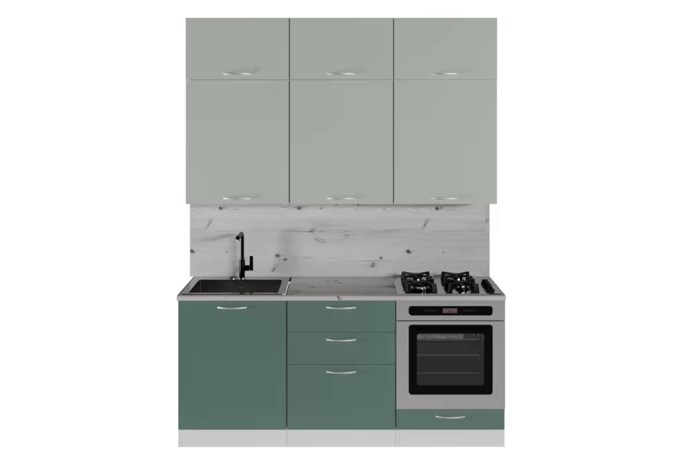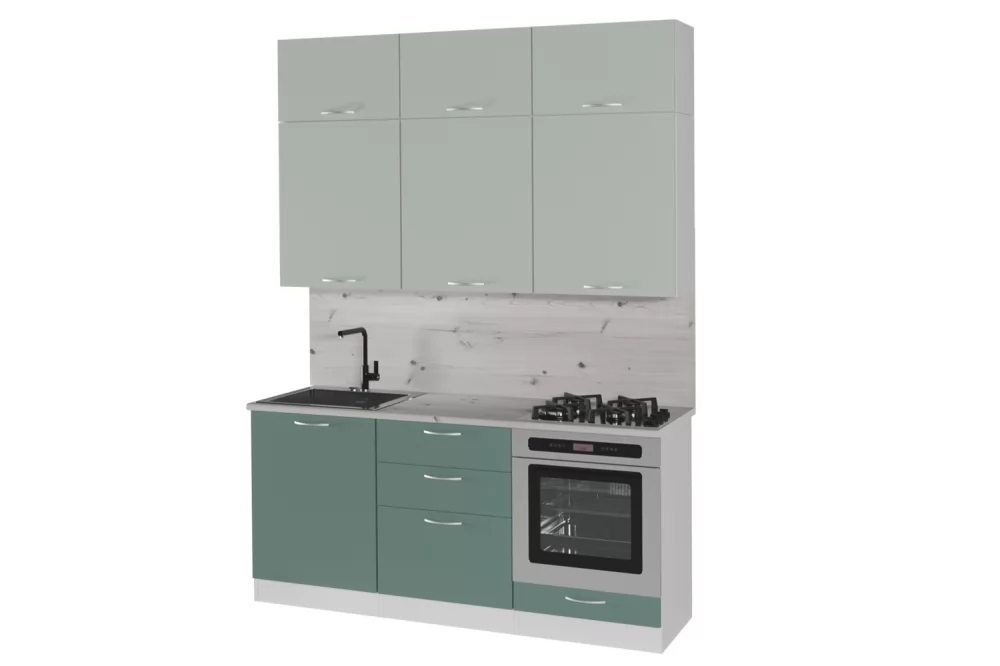 Мойки, смесители, посудосушители, варочные панели, духовые шкафы, плиты, вытяжки в комплекты гарнитуров не входят.