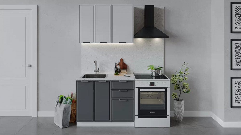 Кухонный гарнитур «Белладжио» длиной 100 см Белый, Софт графит