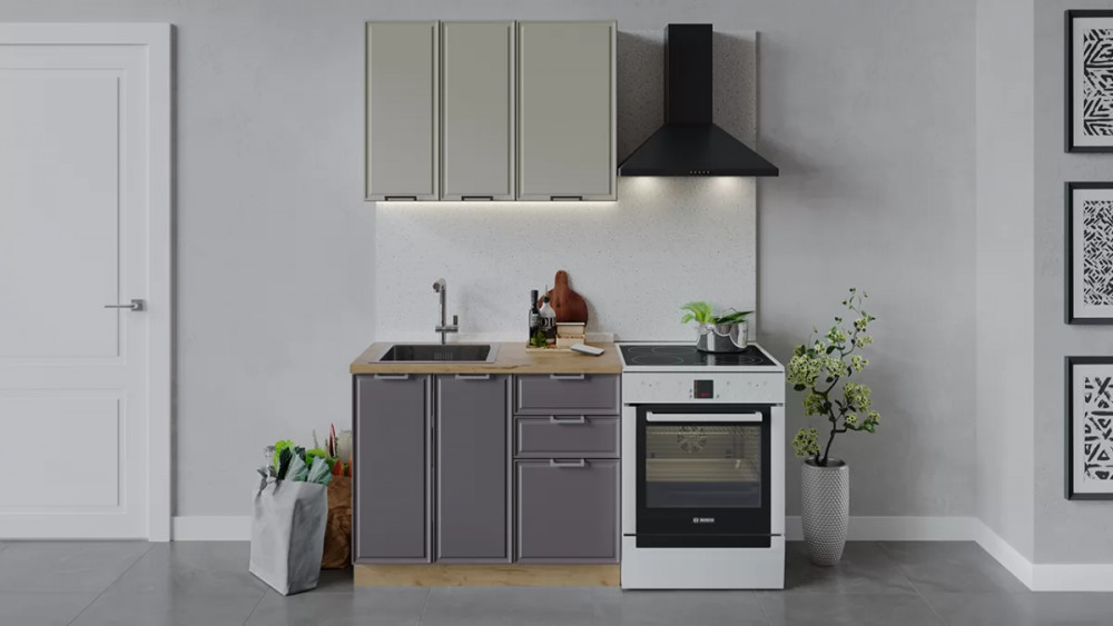 Кухонный гарнитур «Белладжио» длиной 100 см Белый, Софт графит
