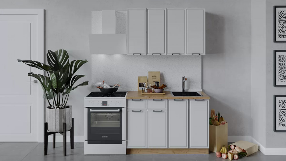 Кухонный гарнитур «Белладжио» длиной 200 см Белый, Фон белый