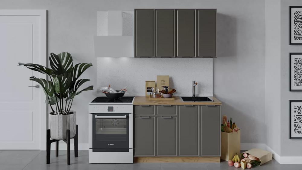 Кухонный гарнитур «Белладжио» длиной 180 см Белый, Фон белый, Софт графит