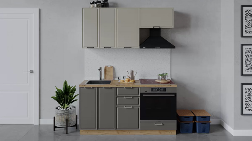 Кухонный гарнитур «Белладжио» длиной 150 см Дуб Крафт золотой, Софт графит