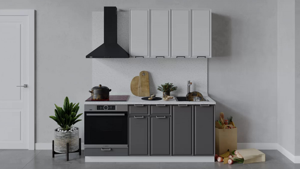 Кухонный гарнитур «Белладжио» длиной 200 см Белый, Фон белый, Софт графит