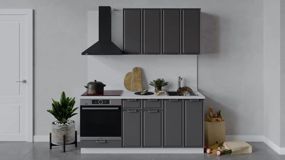 Кухонный гарнитур «Белладжио» длиной 200 см Белый, Фон белый, Софт графит