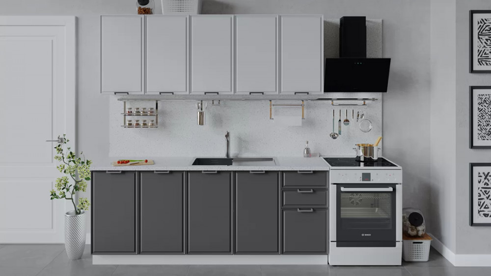 Кухонный гарнитур «Белладжио» длиной 200 см Белый, Фон белый, Софт графит