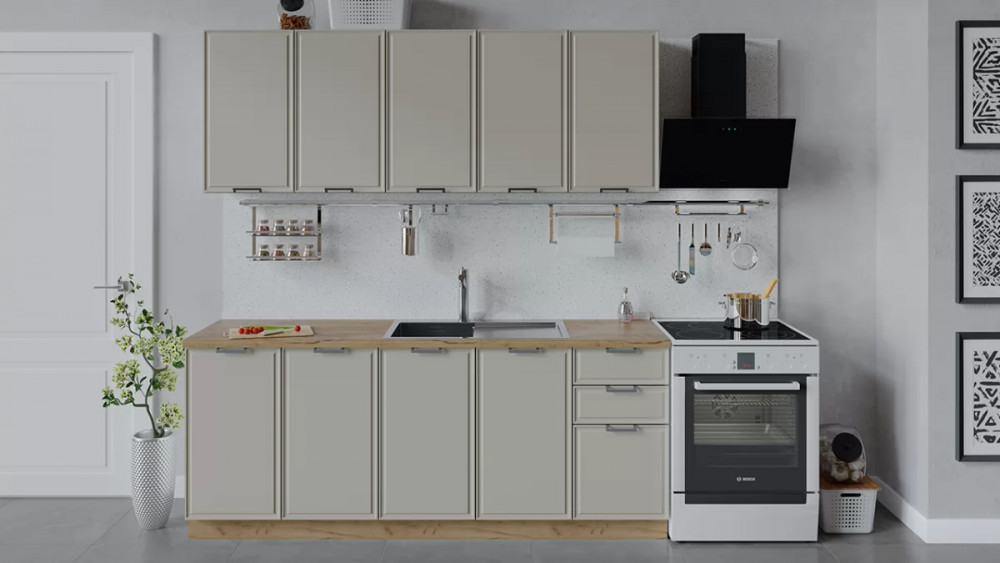 Кухонный гарнитур «Белладжио» длиной 200 см Белый, Софт панакота