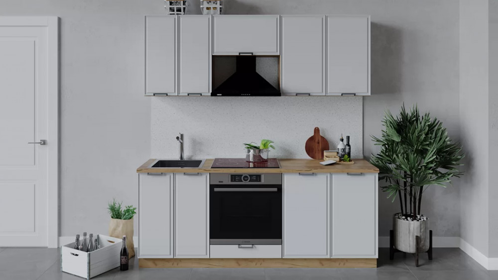 Кухонный гарнитур «Белладжио» длиной 200 см Белый, Фон белый, Софт графит