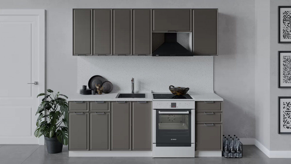 Кухонный гарнитур «Белладжио» длиной 200 см Белый, Фон белый, Софт графит