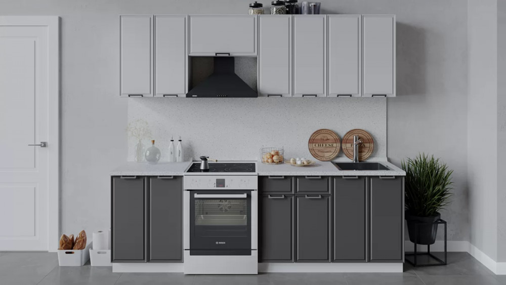 Кухонный гарнитур «Белладжио» длиной 240 см Белый, Софт графит