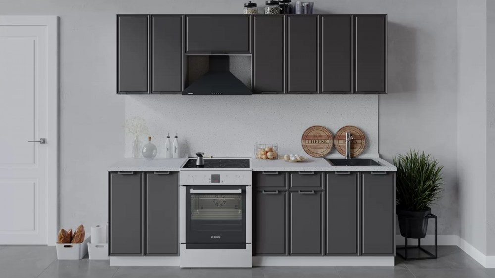 Кухонный гарнитур «Белладжио» длиной 240 см Белый, Фон белый, Софт графит