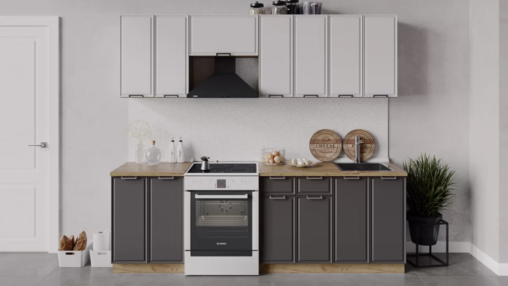 Кухонный гарнитур «Белладжио» длиной 240 см Белый, Софт графит