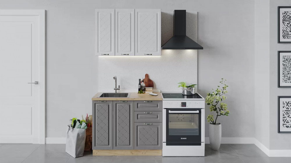 Кухонный гарнитур «Бьянка» длиной 150 см Дуб крафт золотой/Дуб серый