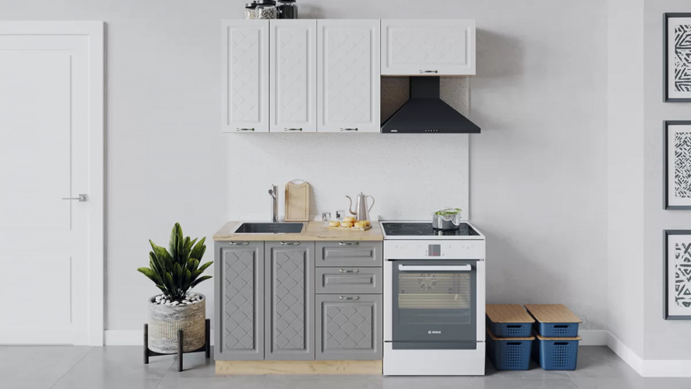 Кухонный гарнитур «Бьянка» длиной 150 см Дуб крафт золотой/Дуб белый/Дуб серый