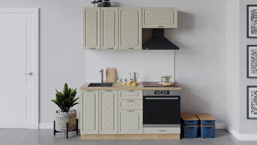 В стоимость не включено: Стеновая панель, столешница, доводчики, бытовая техника, мойка, смеситель, аксессуары