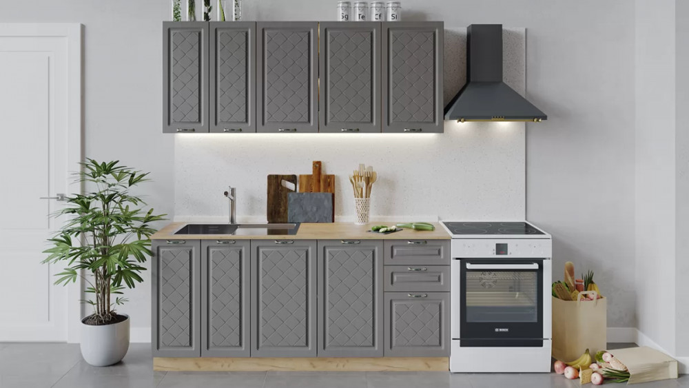 В стоимость не включено: Стеновая панель, столешница, доводчики, бытовая техника, мойка, смеситель, аксессуары
