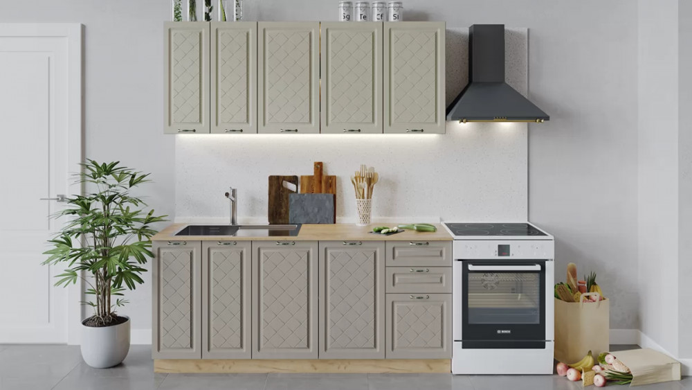 В стоимость не включено: Стеновая панель, столешница, доводчики, бытовая техника, мойка, смеситель, аксессуары