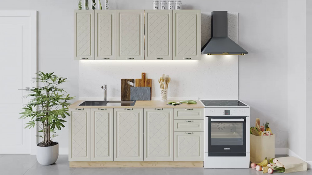 Кухонный гарнитур «Бьянка» длиной 200 см Дуб крафт золотой/Дуб ваниль