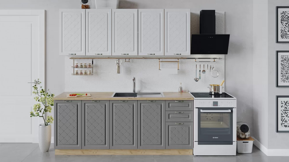 Модульная кухня «Бьянка» Дуб крафт золотой/Дуб белый/Дуб серый