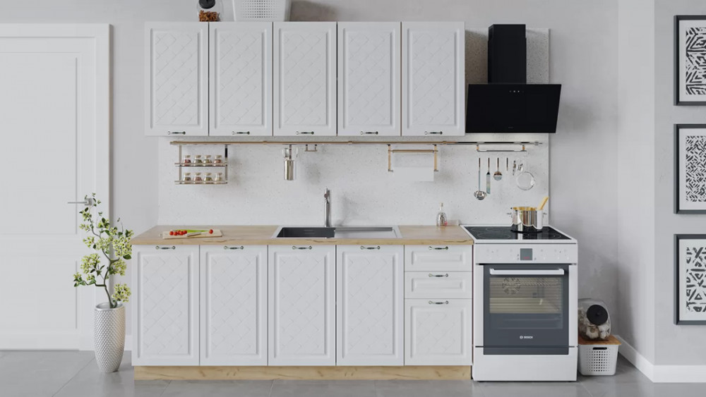 В стоимость не включено: Стеновая панель, столешница, доводчики, бытовая техника, мойка, смеситель, аксессуары